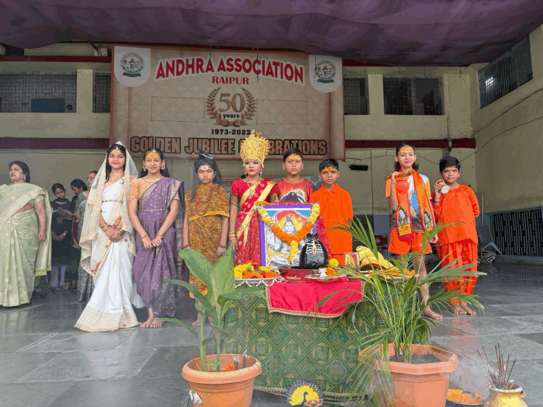 कार्यक्रम का शुभारंभ भगवान शंकर के चित्र पर माल्यार्पण और शिवलिंग पर जलाभिषेक कर विधिवत पूजा-अर्चना के साथ किया गया। इस अवसर पर मुख्य अतिथि के रूप में श्री वी. रामा राव (भूतपूर्व सदस्य, नगर पालिक निगम, कोरबा) उपस्थित थे। विशिष्ट अतिथियों में डॉ. अरुण पटनायक (सीनियर डायरेक्टर, एमिटी यूनिवर्सिटी), श्री जी. स्वामी (अध्यक्ष, आंध्र एसोसिएशन, रायपुर), श्री मोहन के. नायडू (कोषाध्यक्ष) एवं श्री एम. श्रीनिवास (संयुक्त सचिव-2) सम्मिलित हुए। कार्यक्रम में कार्यकारिणी के सदस्य श्री के. विजय कुमार, श्री जी. नागेश, शाला की प्राचार्या डॉ. फ्रेनी जयप्रकाश तथा उपप्राचार्या श्रीमती मौसमी भट्टाचार्य भी उपस्थित थीं।
